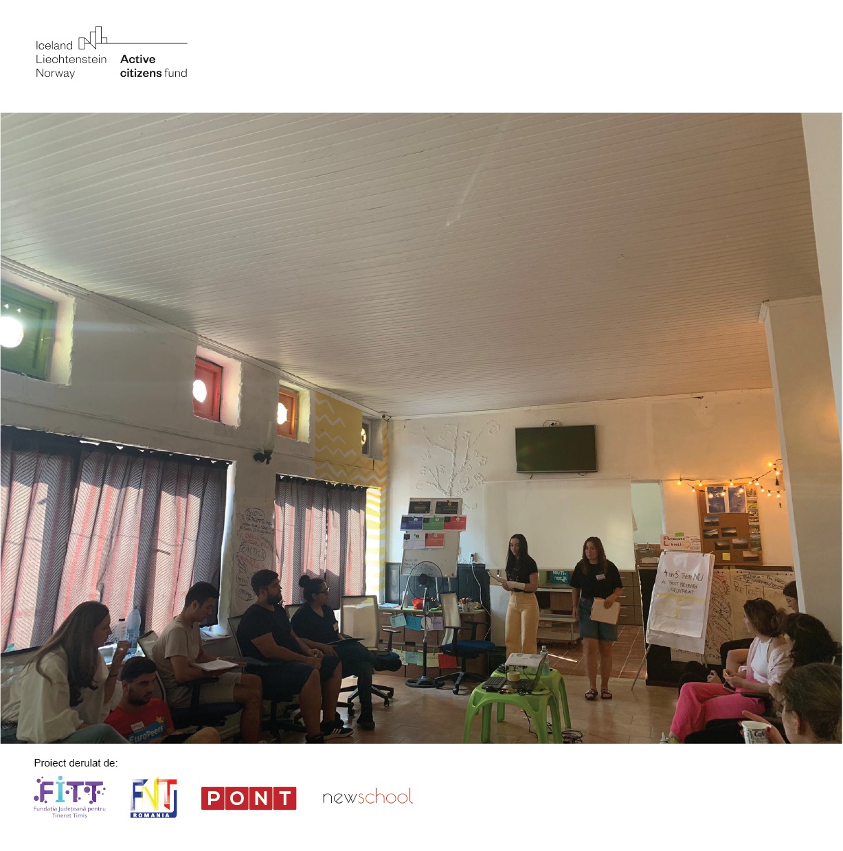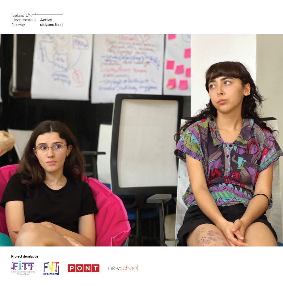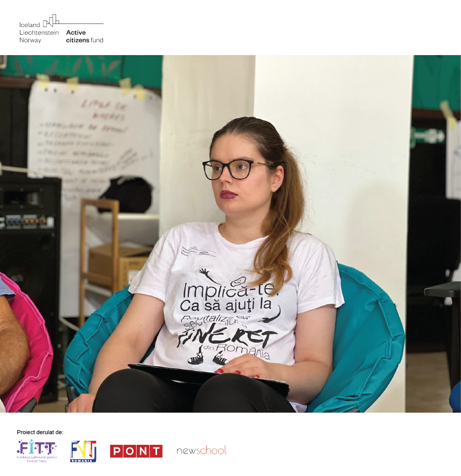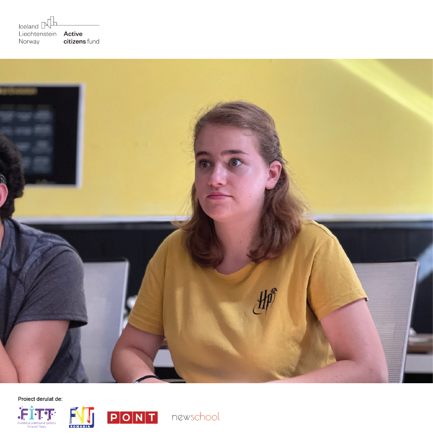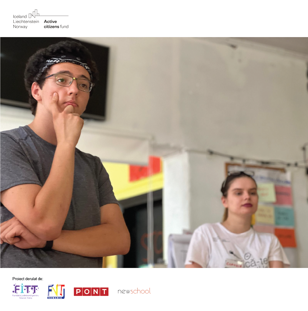 Proiectul „Revitalizarea sectorului de tineret din România” este derulat de Fundația Județeană pentru Tineret Timiș, în parteneriat cu Fundația Națională pentru Tineret, Grupul PONT și Newschool și beneficiază de finanțare prin Active Citizens Fund – Romania, program finanțat de Islanda, Liechtenstein și Norvegia prin Granturile SEE 2014-2021. Conținutul acestei postări nu reprezintă în mod necesar poziția oficială a Granturilor SEE și Norvegiene 2014-2021; pentru mai multe informații accesați www.eeagrants.org.